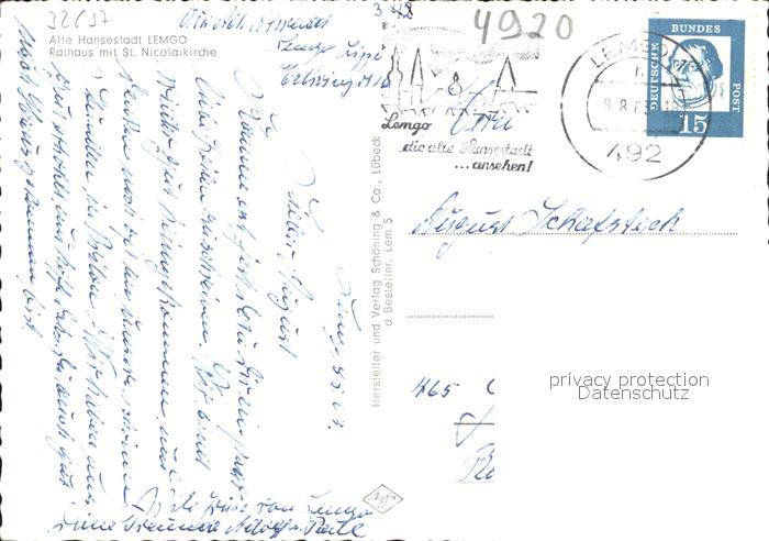 72168299 alte Postkarte Lemgo Lippe NRW Rathaus mit St. Nicolaikirche postalisch gelaufen Erhaltung siehe scans KatCode: 11110005766044