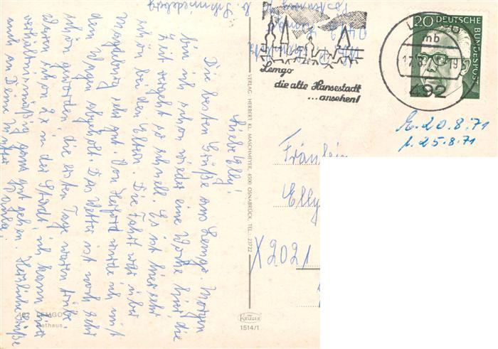 73914399 Lemgo Lippe NRW Rathaus postalisch gelaufen Erhaltung siehe scans [WerneD78] alte Postkarte Wern Katcode 11110005766044