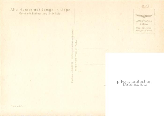 73616999 Lemgo Markt mit Rathaus und St Nikolai Fliegeraufnahme postalisch nicht gelaufen Erhaltung siehe scans [WerneD78] KatCode: 11110005766044