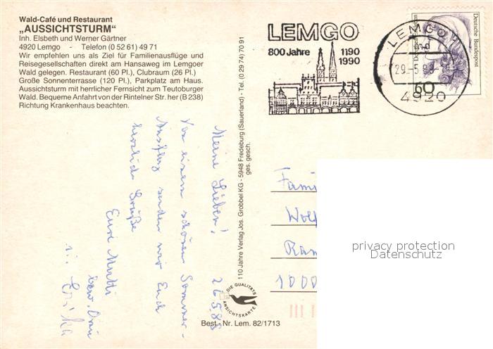 73125748 alte Postkarte Lemgo WaldCafe Aussichtsturm postalisch gelaufen Erhaltung siehe scans [LiesaD40] KatCode: 11110005766044