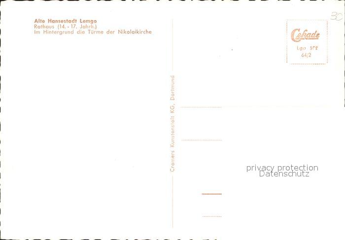 72404709 Lemgow Niedersachsen Rathaus mit Nikolaikirche postalisch nicht gelaufen Erhaltung siehe scans KatCode: 11110003354015