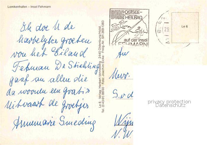 72886296 alte Postkarte Lemkendorf Fehmarn Fliegeraufnahme Hafen postalisch gelaufen Erhaltung siehe scans [LiesaD40] KatCode: 11110001055046