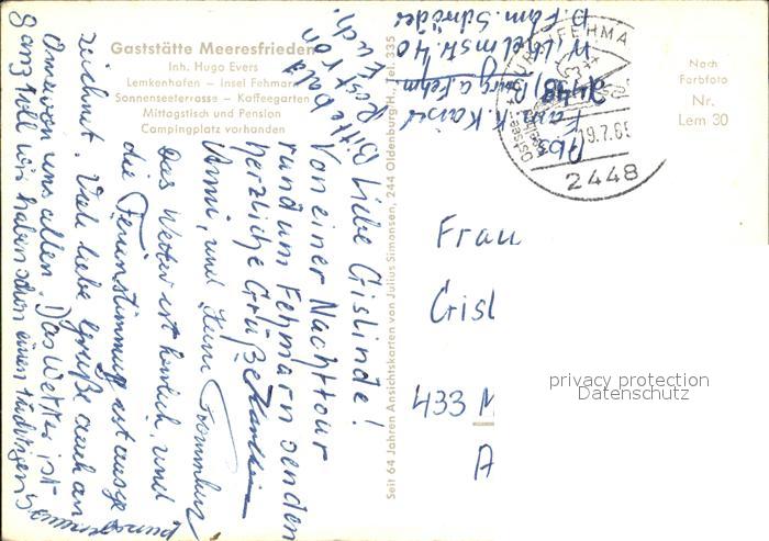 72496586 alte Postkarte Lemkenhafen Gaststaette Meeresfrieden Terrasse Uferpromenade postalisch gelaufen Erhaltung siehe scans KatCode: 11110001055046