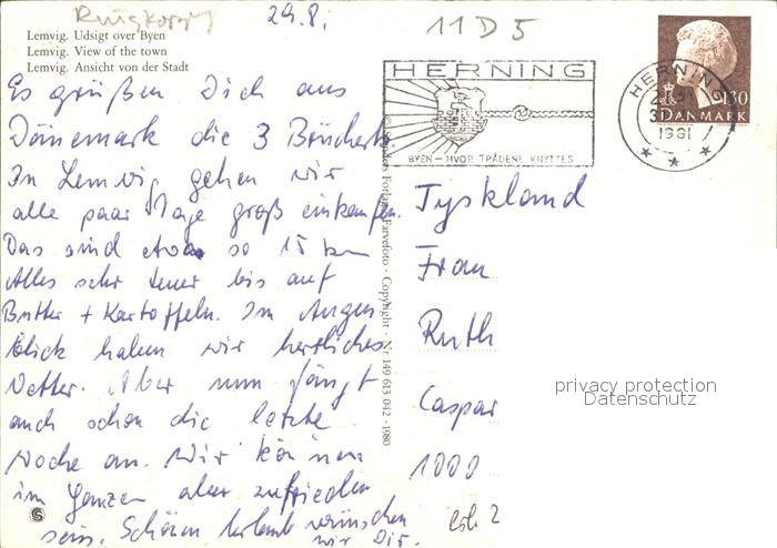 old postcard Lemvig Udsigt over Byen Fliegeraufnahme postalisch gelaufen Erhaltung siehe scans