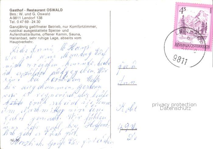 72328544 alte Postkarte Lendorf Kaernten Gasthof Restaurant Oswald postalisch gelaufen Erhaltung siehe scans KatCode: 11390212020616