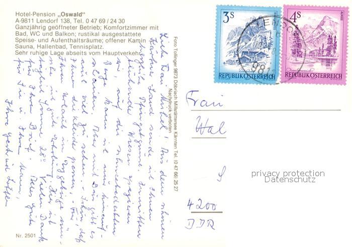 73245723 alte Postkarte Lendorf Kaernten Hotel Pension Oswald postalisch gelaufen Erhaltung siehe scans [KathaD81] KatCode: 11390212020616
