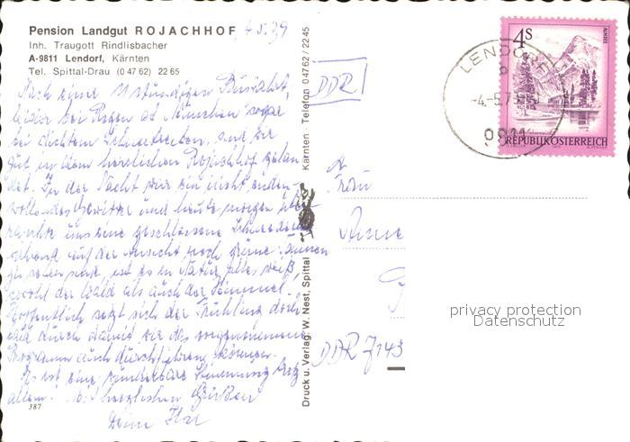 72485920 alte Postkarte Lendorf Kaernten Pension Landgut Rojacherhof postalisch gelaufen Erhaltung siehe scans KatCode: 11390212020616
