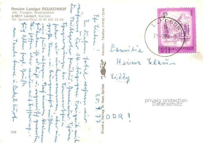 73056319 alte Postkarte Lendorf Kaernten Pension Landgut Rojachhof postalisch gelaufen Erhaltung siehe scans [WerneD78] KatCode: 11390212020616