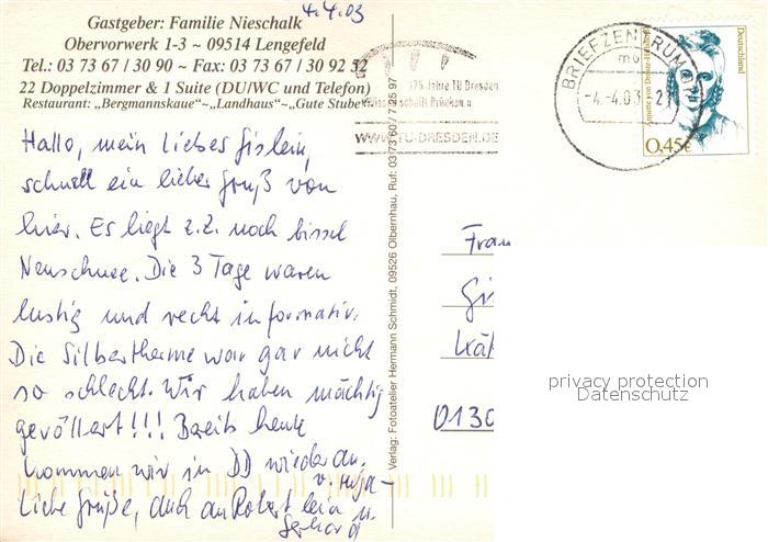 73658714 alte Postkarte Lengefeld Erzgebirge Hotel Waldesruh Glueck Auf postalisch gelaufen Erhaltung siehe scans [FriedD77] KatCode: 11110014181240