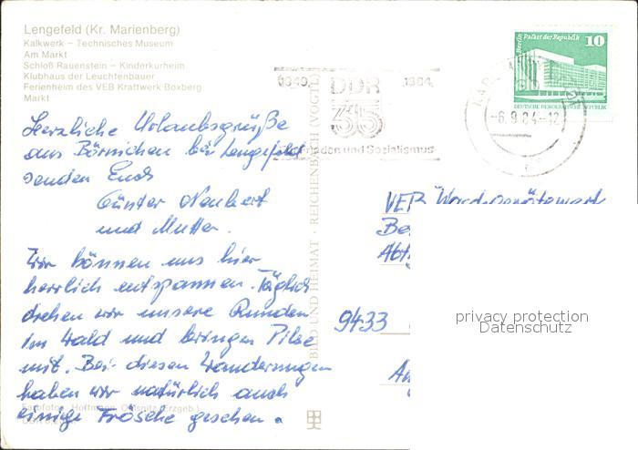 72222693 alte Postkarte Lengefeld Erzgebirge Kalkwerk Museum Markt Schloss Rauenstein Kinderkurheim Klubhaus Ferienheim postalisch gelaufen Erhaltung siehe scans KatCode: 11110014181240