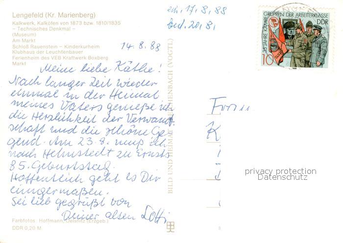 73655133 alte Postkarte Lengefeld Erzgebirge Kalkwerk Technisches Denkmal Museum Markt Schloss Rauenstein Kinderkurheim Klubhaus der Leuchtenbauer Ferienheim Markt postalisch gelaufen Erhaltung siehe scans [FriedD77] KatCode: 11110014181240