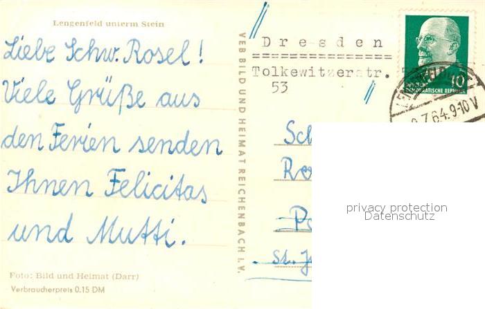 73046736 alte Postkarte Lengenfeld Stein postalisch gelaufen Erhaltung siehe scans [PaolaD17] KatCode: 11110016064042