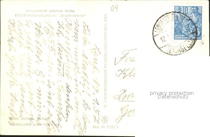 72113596 alte Postkarte Lengenfeld Stein FDGB Erholungsheim Bischofstein postalisch gelaufen Erhaltung siehe scans KatCode: 11110016064042