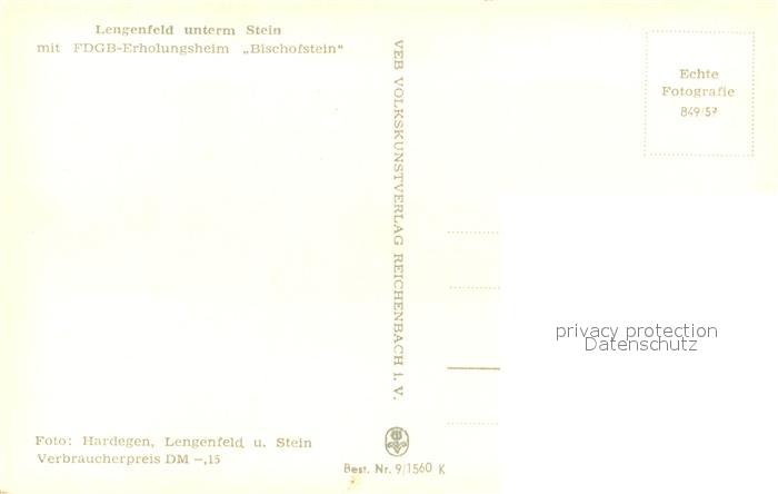 73031087 Lengenfeld Stein FDGB Erholungsheim Bischofstein postalisch nicht gelaufen Erhaltung siehe scans [KathaD81] KatCode: 11110016064042