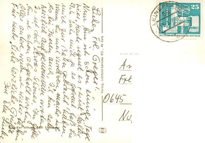 73895806 Lengenfeld Vogtland Panorama FDGB Heim Bischofsheim Gastraeume Zimmer postalisch gelaufen Erhaltung siehe scans [FriedD77] alte Postkarte Frie Katcode 11110014178290