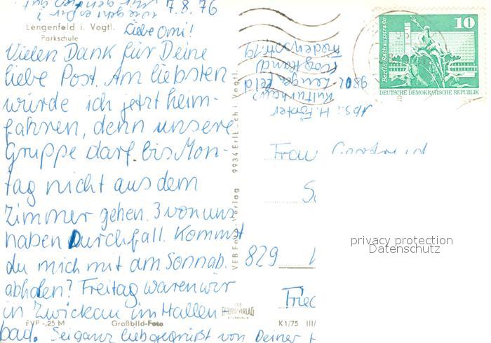 73668950 alte Postkarte Lengenfeld Vogtland Parkschule postalisch gelaufen Erhaltung siehe scans [FriedD77] KatCode: 11110014178290