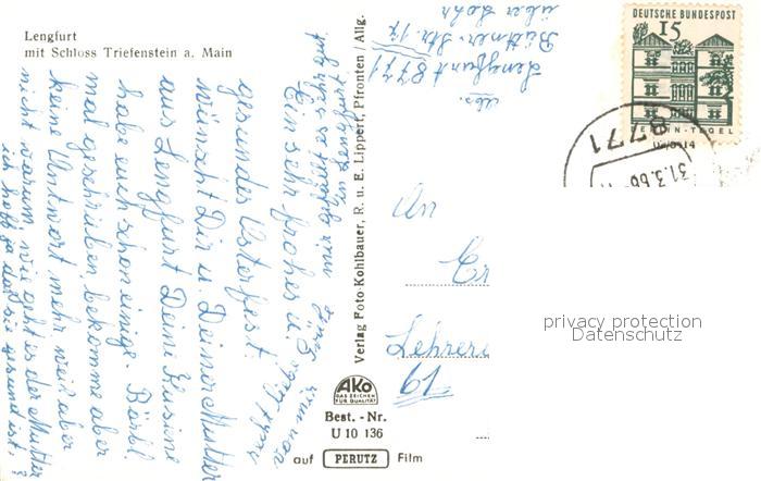 73671659 alte Postkarte Lengfurt mit Schloss Triefenstein am Main postalisch gelaufen Erhaltung siehe scans [WerneD78] KatCode: 11110009677154