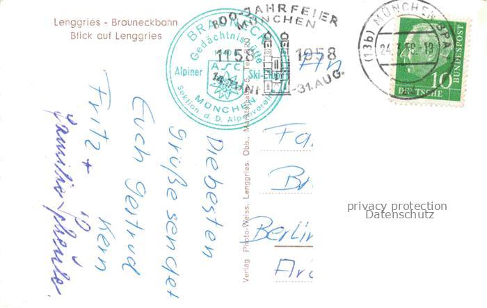 74154225 alte Postkarte Lenggries Bayern Brauneckbahn Bergbahn Panorama Blick ins Tal postalisch gelaufen Erhaltung siehe scans [FriedD77] KatCode: 11110009173135