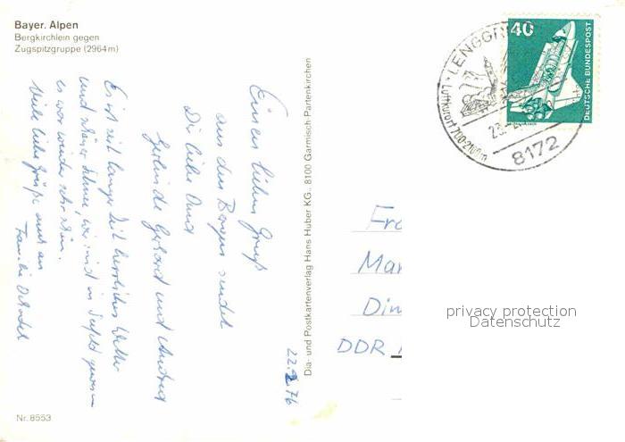 72616617 alte Postkarte Lenggries Bergkirchlein gegen Zugspitzgruppe Winterpanorama Bayerische Alpen postalisch gelaufen Erhaltung siehe scans [FriedD77] KatCode: 11110009173135