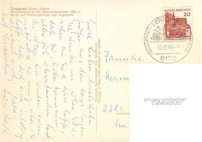 72966796 alte Postkarte Lenggries Brauneckgipfel Benediktinerwand Ammersgebirge Zugspitze postalisch gelaufen Erhaltung siehe scans [LiesaD40] KatCode: 11110009173135