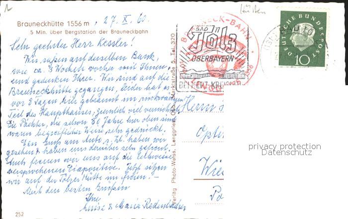 71941806 alte Postkarte Lenggries Brauneckhuette Berghaus auf dem Brauneck Bayerische Voralpen postalisch gelaufen Erhaltung siehe scans KatCode: 11110009173135