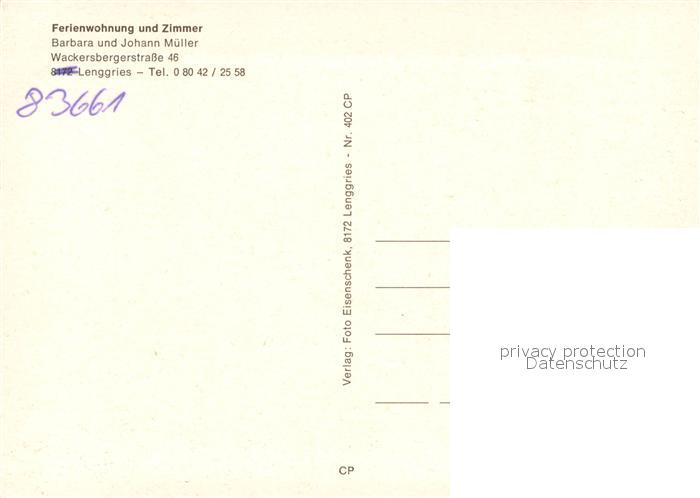 73652360 Lenggries Ferienwohnung Barbara und Johann Mueller postalisch nicht gelaufen Erhaltung siehe scans [WerneD78] KatCode: 11110009173135