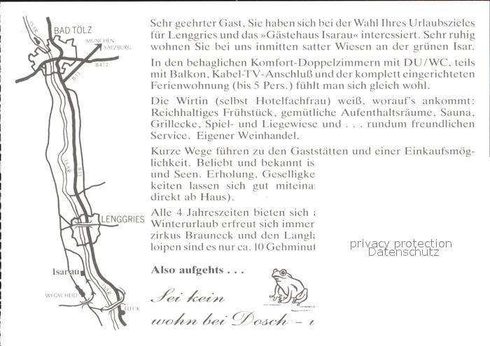72028436 Lenggries Gaestehaus Isarau postalisch nicht gelaufen Werbekarte (keine Postkarte) Erhaltung siehe scans KatCode: 11110009173135