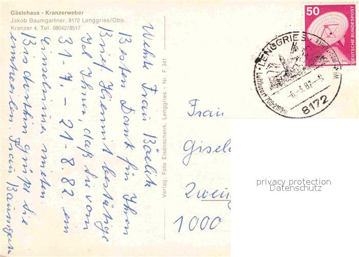 72919295 alte Postkarte Lenggries Gaestehaus Kranzerweber postalisch gelaufen Erhaltung siehe scans [NatalD47] KatCode: 11110009173135