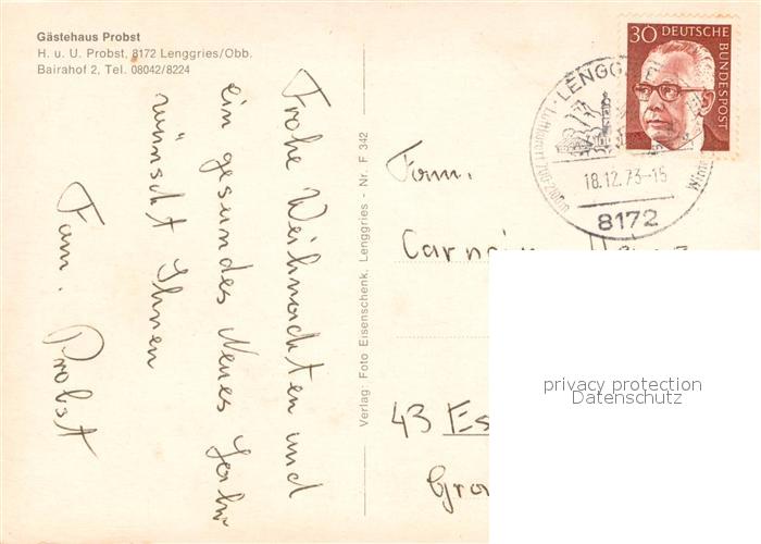 73719484 alte Postkarte Lenggries Gaestehaus Probst postalisch gelaufen Erhaltung siehe scans [WerneD78] KatCode: 11110009173135
