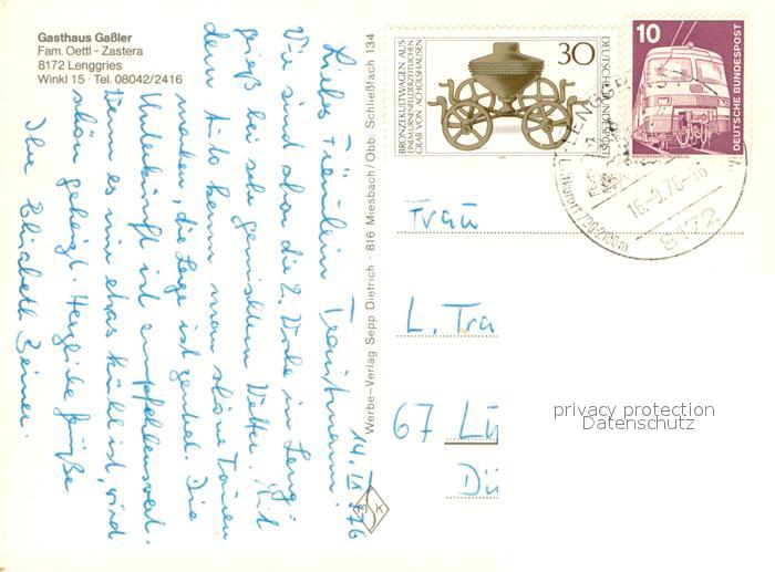 73727243 alte Postkarte Lenggries Gasthaus Gassler postalisch gelaufen Erhaltung siehe scans [WerneD78] KatCode: 11110009173135
