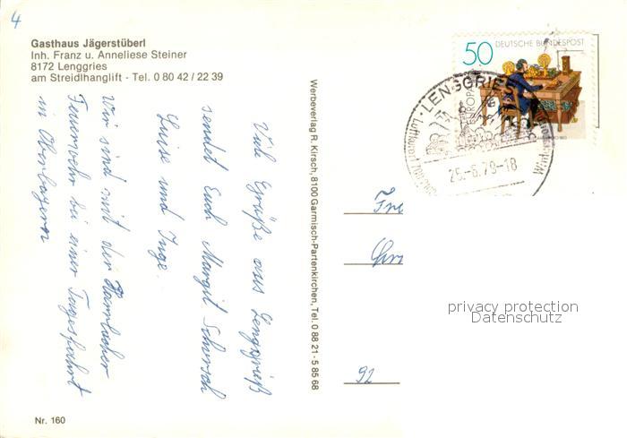 73747557 alte Postkarte Lenggries Gasthaus Jaegerstueberl Gaststube postalisch gelaufen Erhaltung siehe scans [WerneD78] KatCode: 11110009173135