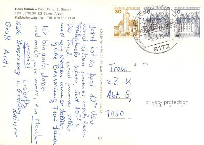 73860079 alte Postkarte Lenggries Haus Simon postalisch gelaufen Erhaltung siehe scans [WerneD78] KatCode: 11110009173135