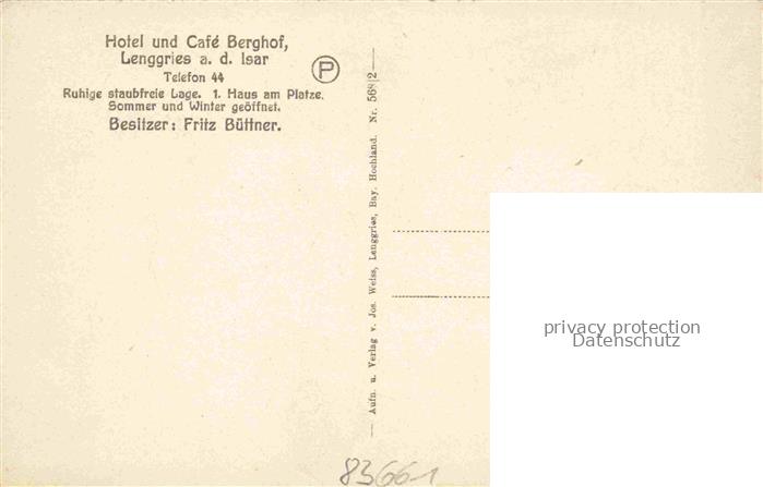 74019400 Lenggries Hotel Cafe Berghof postalisch nicht gelaufen Erhaltung siehe scans [WerneD78] KatCode: 11110009173135