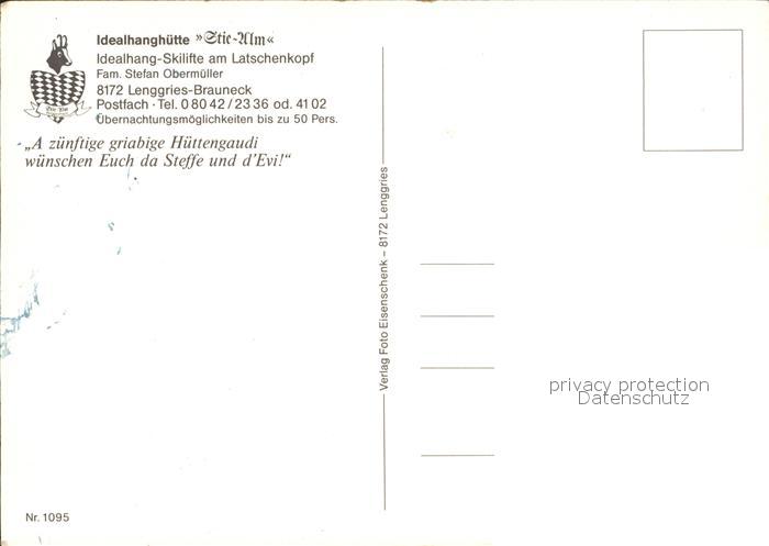 72316689 Lenggries Idealhanghuette Stie Alm Terrasse postalisch nicht gelaufen Erhaltung siehe scans KatCode: 11110009173135