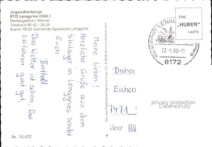 72142768 alte Postkarte Lenggries Jugendherberge im Winter postalisch gelaufen Erhaltung siehe scans KatCode: 11110009173135