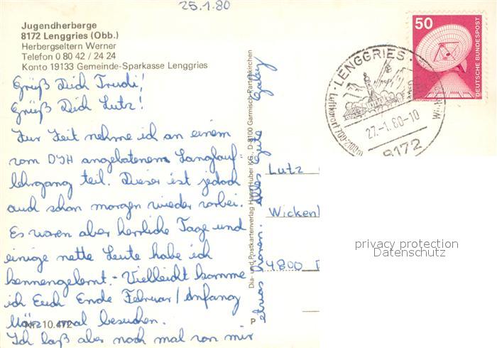73685348 alte Postkarte Lenggries Jugendherberge postalisch gelaufen Erhaltung siehe scans [WerneD78] KatCode: 11110009173135