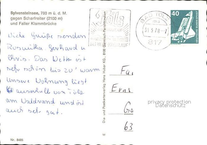 72391797 alte Postkarte Lenggries Sylvensteinsee mit Faller Klammbruecke gegen Scharfreiter postalisch gelaufen Erhaltung siehe scans KatCode: 11110009173135