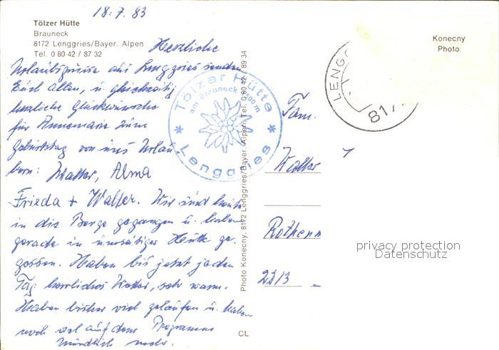 71866293 alte Postkarte Lenggries Toelzer Huette Brauneck postalisch gelaufen Erhaltung siehe scans KatCode: 11110009173135