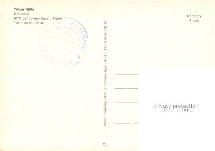 73080605 Lenggries Toelzer Huette Brauneck postalisch nicht gelaufen Erhaltung siehe scans [KathaD81] KatCode: 11110009173135