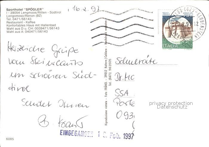 old postcard Lengmoos Ritten Sporthotel Spoegler postalisch gelaufen Erhaltung siehe scans