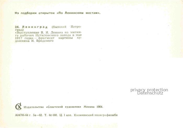 74042281 LENIN Wladimir Iljitsch Politik Politics Politique Leningrad Demo Putilov Fabrik postalisch nicht gelaufen Erhaltung siehe scans [IrynaD87] KatCode: 22420000000300
