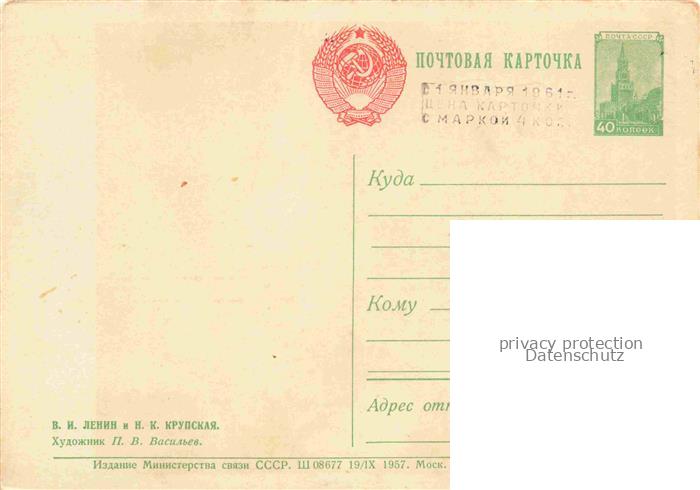 74042242 LENIN Wladimir Iljitsch Politik Politics Politique N.K. Kupskaya Kuenstler Wasiljew postalisch nicht gelaufen Erhaltung siehe scans [IrynaD87] KatCode: 22420000000300