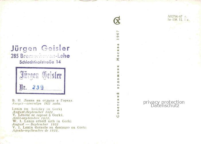74040643 LENIN Wladimir Iljitsch Politik Politics Politique Urlaub In Horki postalisch nicht gelaufen Erhaltung siehe scans [IrynaD87] KatCode: 22420000000300