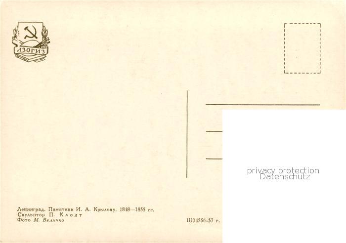 74038465 Leningrad St-Petersbourg ST-PETERSBURG RU Denkmal I.A. Krelovu postalisch nicht gelaufen Erhaltung siehe scans [IrynaD87] KatCode: 11440