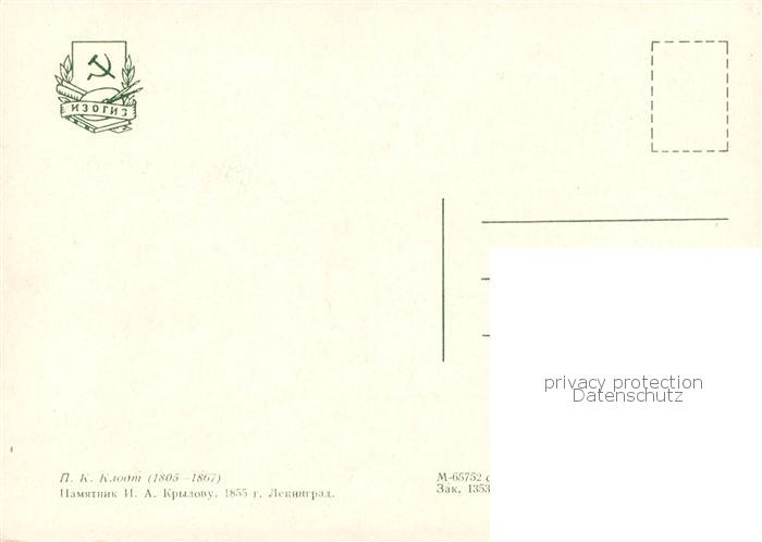 74038464 Leningrad St-Petersbourg ST-PETERSBURG RU Denkmal Krelovu I.A. postalisch nicht gelaufen Erhaltung siehe scans [IrynaD87] KatCode: 11440