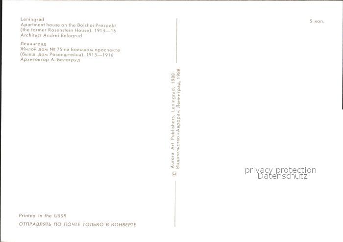Leningrad St Petersburg Apartmenthouse on th Bolshoi Prospekt postalisch nicht gelaufen Erhaltung siehe scans