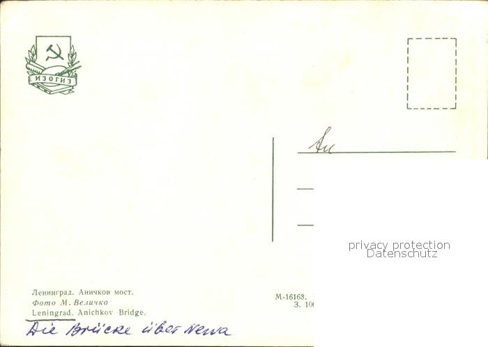Leningrad St Petersburg Arnichkov Bruecke postalisch nicht gelaufen Erhaltung siehe scans
