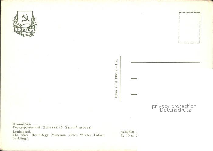 Leningrad St Petersburg Hermitage Museum postalisch nicht gelaufen Erhaltung siehe scans