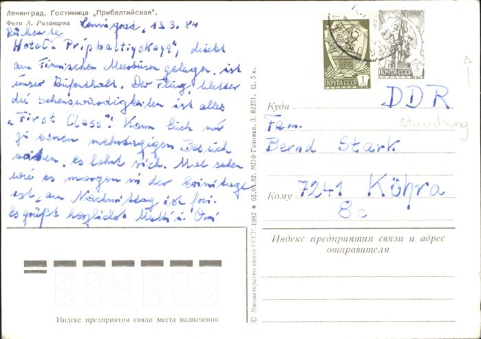 old postcard Leningrad St Petersburg Hotel postalisch gelaufen Erhaltung siehe scans