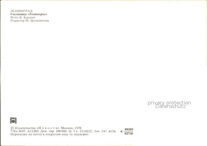 Leningrad St Petersburg Hotel Leningrad postalisch nicht gelaufen Erhaltung siehe scans
